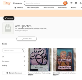 COMING SOON: etsy shop, artfulpoetics! https://artfulpoetics.etsy.com Selling copies of my books, and other things in the future. Please check it out!