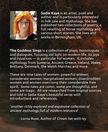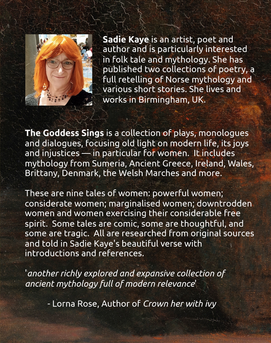 The Goddess Sings is a collection of nine mythological plays, monologues and dialogues which focus old light on modern life; its joys and injustices — in particular for women.